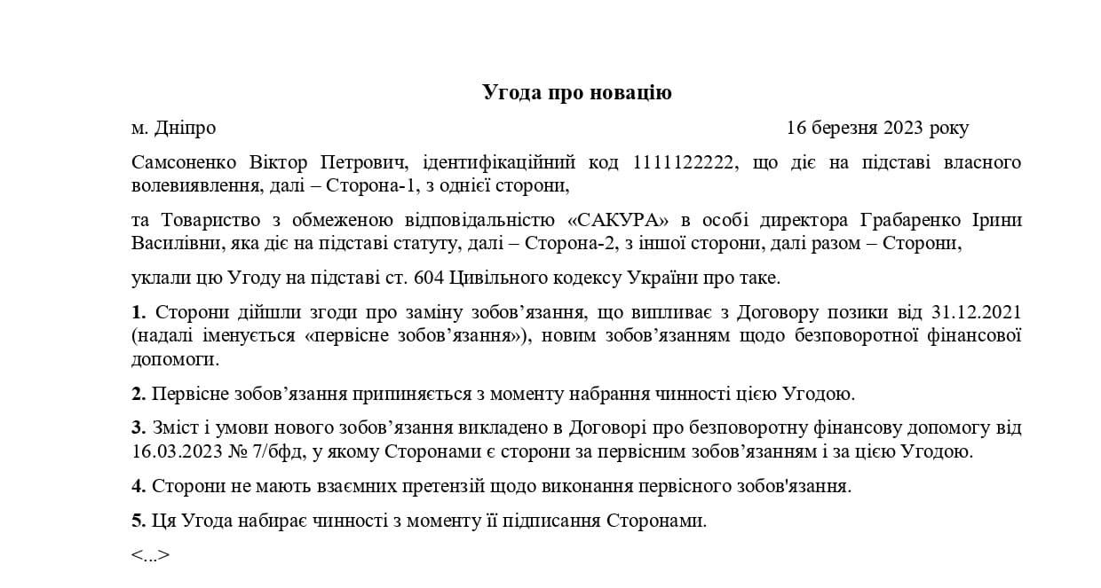 Поворотну фінансову допомогу отримано від засновника: як погасити заборгованість, якщо немає грошей? Приклад складання Зразок для завантаження Див. також: Угода про зарахування зустрічних однорідних вимог Угода про прощення боргу позикодавцем ...